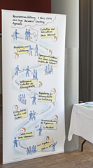 Auf einem großformatigen Banner wurde der Ablauf der Veranstaltung in ein Bild übersetzt — als Orientierung und als inspirierender „Blickfang“ am Empfang.