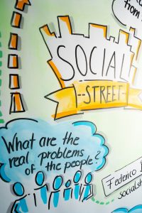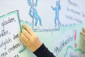 Während die Teilnehmenden an Inhalten arbeiten, entsteht vor ihren Augen ein visuelles Protokoll. Eine sich fortlaufend entwickelnde Bilderlandschaft in Wort-Bild-Kombination verdeutlicht den Prozess und fokussiert die behandelten Themen. So entsteht für alle Beteiligten Orientierung und eine inspirierende Zusammenfassung.