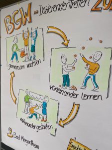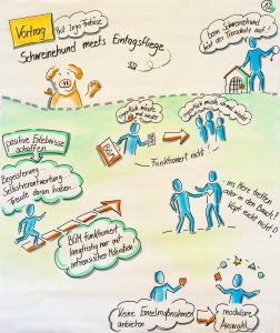 - bauen auf Wertschätzung und Lösungsorientierung: Graphic Recordings sind keine Karikaturen, sondern unterstützen den Lösungsfokus.