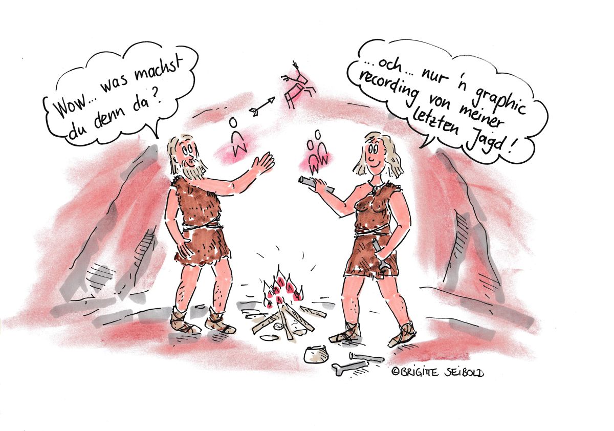 Vor ungefähr 35.000 Jahren fingen einige unserer Ahnen an, wichtige Ereignisse und Erfahrungen in Bildern festzuhalten – die ersten „Graphic Recordings“ entstanden an Höhlenwänden …